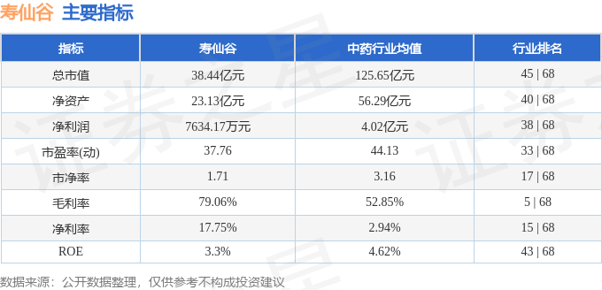 该股主要指标及行业内排名如下: