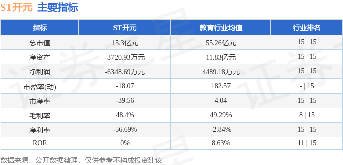 ST开元2025年三季报显示,前三季度公司主营收入1.13亿元,同比下降19.5%;归母净利润-6348.69万元,同比下降75.83%;扣非净利润-6255.9万元,同比下降87.72%;其中2025年第三季度,公司单季度主营收入3693.07万元,同比下降12.3%;单季度归母净利润-1912.5万元,同比下降5.72%;单季度扣非净利润-1845.43万元,同比下降3.37%;负债率108.31%,投资收益1718.45万元,财务费用781.82万元,毛利率48.4%。ST开元(300338)主营业务:职业教育和新能源业务。