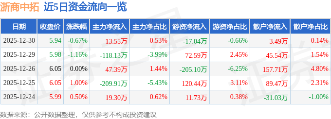 12月30日的资金流向数据方面,主力资金净流入13.55万元,占总成交额0.53%,游资资金净流出17.04万元,占总成交额0.66%,散户资金净流入3.49万元,占总成交额0.14%。
