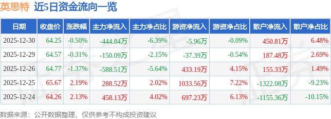 证券之星消息,截至2025年12月30日收盘,英思特(301622)报收于64.25元,下跌0.5%,换手率1.72%,成交量1.08万手,成交额6959.07万元。