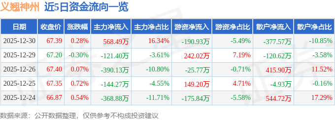 12月30日的资金流向数据方面,主力资金净流入568.49万元,占总成交额16.34%,游资资金净流出190.93万元,占总成交额5.49%,散户资金净流出377.57万元,占总成交额10.85%。