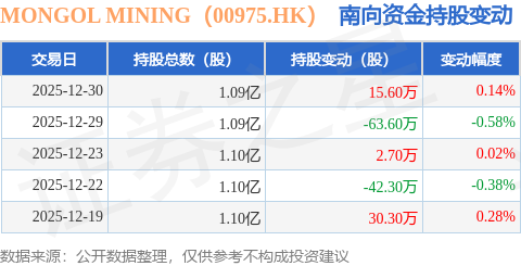 证券之星消息,12月30日南向资金增持15.6万股MONGOL MINING(00975.HK)。近5个交易日中,获南向资金减持的有2天,累计净减持57.3万股。近20个交易日中,获南向资金减持的有11天,累计净减持254.7万股。截至目前,南向资金持有MONGOL MINING(00975.HK)1.09亿股,占公司已发行普通股的10.54%。