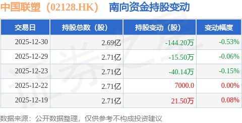 证券之星消息,12月30日南向资金减持144.2万股中国联塑(02128.HK)。近5个交易日中,获南向资金减持的有3天,累计净减持177.64万股。近20个交易日中,获南向资金增持的有11天,累计净增持514.54万股。截至目前,南向资金持有中国联塑(02128.HK)2.69亿股,占公司已发行普通股的8.66%。