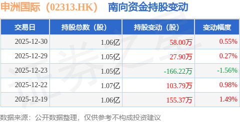 证券之星消息,12月30日南向资金增持58.0万股申洲国际(02313.HK)。近5个交易日中,获南向资金增持的有4天,累计净增持178.84万股。近20个交易日中,获南向资金增持的有13天,累计净增持358.4万股。截至目前,南向资金持有申洲国际(02313.HK)1.06亿股,占公司已发行普通股的7.03%。