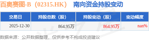 证券之星消息,12月30日南向资金增持864.95万股百奥赛图-B(02315.HK)。截至目前,南向资金持有百奥赛图-B(02315.HK)864.95万股,占公司已发行普通股的7.8%。