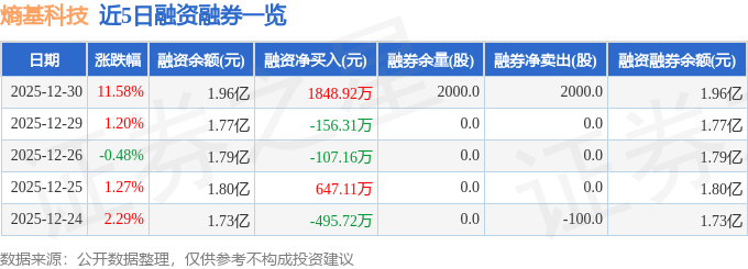 熵基科技融资融券信息显示,融资方面,当日融资买入6138.94万元,融资偿还4290.02万元,融资净买入1848.92万元。融券方面,融券卖出2000.0股,融券偿还0.0股,融券余量2000.0股,融券余额6.61万元。融资融券余额1.96亿元。