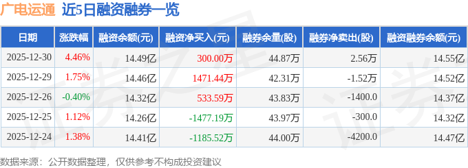 证券之星消息,截至2025年12月30日收盘,广电运通(002152)报收于13.35元,上涨4.46%,换手率3.94%,成交量97.81万手,成交额13.09亿元。