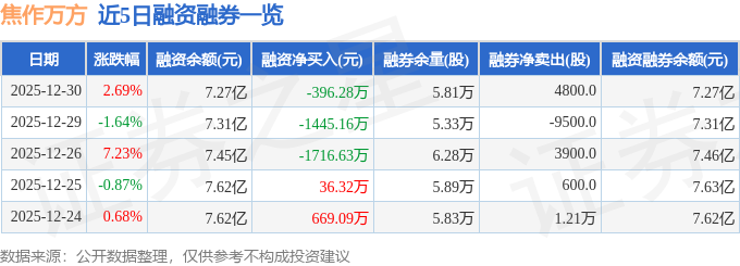 焦作万方融资融券信息显示,融资方面,当日融资买入7988.33万元,融资偿还8384.61万元,融资净偿还396.28万元。融券方面,融券卖出4800.0股,融券偿还0.0股,融券余量5.81万股,融券余额64.43万元。融资融券余额7.27亿元。