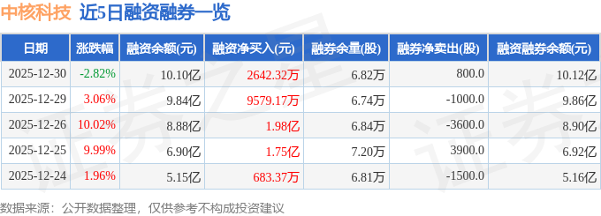 中核科技融资融券信息显示,融资方面,当日融资买入1.73亿元,融资偿还1.47亿元,融资净买入2642.32万元,连续3日净买入累计3.2亿元。融券方面,融券卖出1100.0股,融券偿还300.0股,融券余量6.82万股,融券余额176.3万元。融资融券余额10.12亿元。
