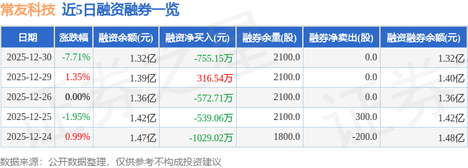 证券之星消息,截至2025年12月30日收盘,常友科技(301557)报收于131.97元,下跌7.71%,换手率14.43%,成交量1.6万手,成交额2.22亿元。