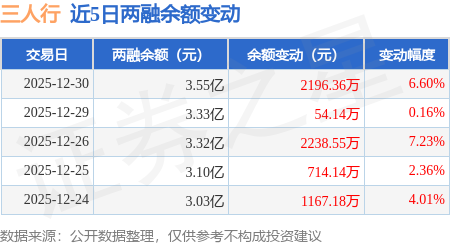 证券之星消息,12月30日,三人行(605168)融资买入6216.08万元,融资偿还4025.25万元,融资净买入2190.83万元,融资余额3.54亿元,近3个交易日已连续净买入累计4475.8万元,近20个交易日中有14个交易日出现融资净买入。