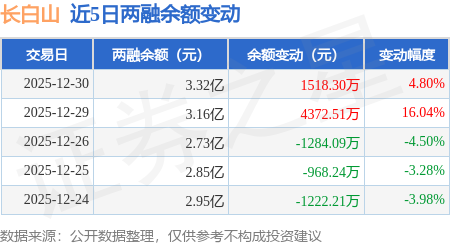 证券之星消息,12月30日,长白山(603099)融资买入4986.36万元,融资偿还3470.32万元,融资净买入1516.03万元,融资余额3.31亿元。