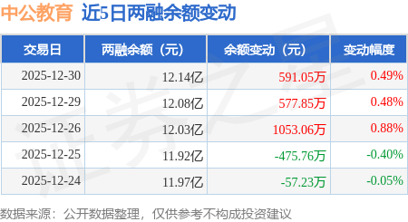 证券之星消息,12月30日,中公教育(002607)融资买入3713.11万元,融资偿还3099.69万元,融资净买入613.42万元,融资余额12.06亿元,近3个交易日已连续净买入累计2241.38万元。