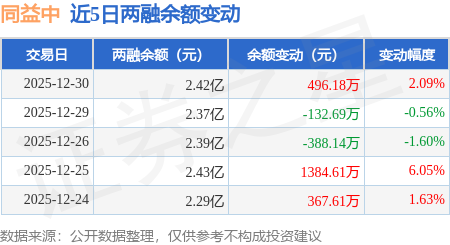 证券之星消息,12月30日,同益中(688722)融资买入3849.34万元,融资偿还3362.37万元,融资净买入486.97万元,融资余额2.42亿元。
