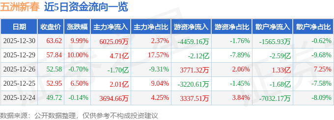 12月30日的资金流向数据方面,主力资金净流入6025.09万元,占总成交额2.37%,游资资金净流出4459.16万元,占总成交额1.76%,散户资金净流出1565.93万元,占总成交额0.62%。