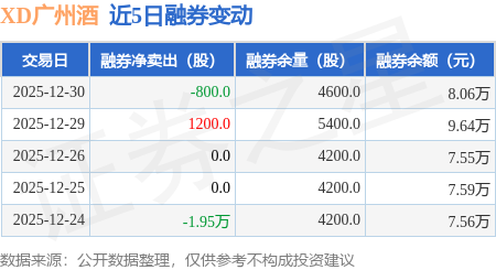 证券之星消息,12月30日,XD广州酒(603043)融资买入772.8万元,融资偿还488.24万元,融资净买入284.56万元,融资余额1.13亿元。