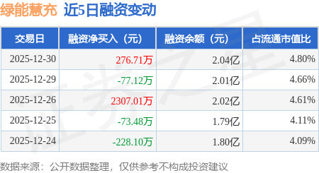 证券之星消息,12月30日,绿能慧充(600212)融资买入1092.8万元,融资偿还816.09万元,融资净买入276.71万元,融资余额2.04亿元。