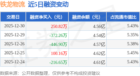 证券之星消息,12月30日,铁龙物流(600125)融资买入1578.02万元,融资偿还1327.2万元,融资净买入250.82万元,融资余额4.56亿元。