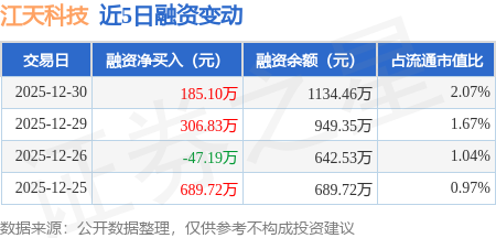 证券之星消息,12月30日,江天科技(920121)融资买入403.98万元,融资偿还218.88万元,融资净买入185.1万元,融资余额1134.46万元。