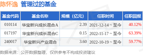 陈怀逸先生:中国,硕士,曾在西南证券、安信证券从事证券研究分析工作,2018年9月加入华宝基金管理有限公司,担任高级分析师、基金经理助理。2021年12月14日担任华宝新兴成长混合型证券投资基金基金经理。2022年10月19日任华宝新兴产业混合型证券投资基金的基金经理。