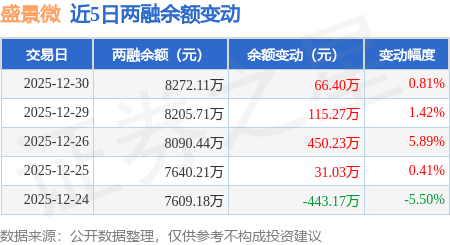 证券之星消息,12月30日,盛景微(603375)融资买入538.2万元,融资偿还471.38万元,融资净买入66.82万元,融资余额8265.18万元,近3个交易日已连续净买入累计634.29万元。