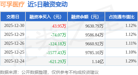 证券之星消息,12月30日,可孚医疗(301087)融资买入477.03万元,融资偿还433.09万元,融资净买入43.95万元,融资余额9630.79万元。