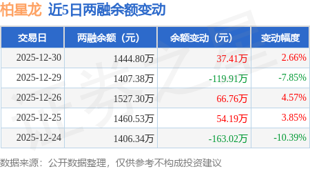 证券之星消息,12月30日,柏星龙(920075)融资买入160.27万元,融资偿还122.86万元,融资净买入37.41万元,融资余额1444.8万元,近20个交易日中有11个交易日出现融资净买入。