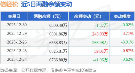 证券之星消息,12月30日,倍轻松(688793)融资买入393.7万元,融资偿还394.5万元,融资净卖出0.79万元,融资余额6775.77万元。