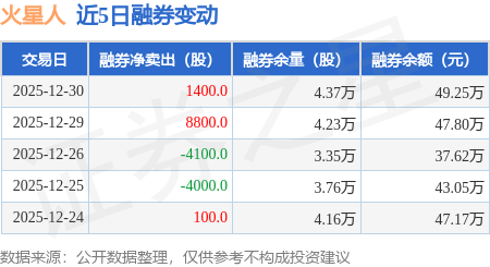 证券之星消息,12月30日,火星人(300894)融资买入140.13万元,融资偿还212.79万元,融资净卖出72.66万元,融资余额1.42亿元。