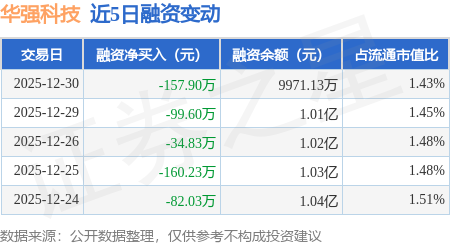 证券之星消息,12月30日,华强科技(688151)融资买入243.14万元,融资偿还401.04万元,融资净卖出157.9万元,融资余额9971.13万元。