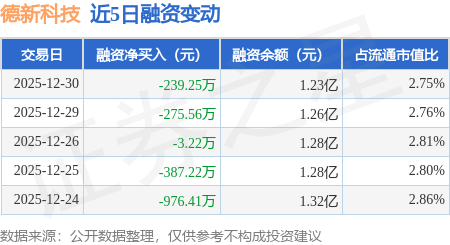 证券之星消息,12月30日,德新科技(603032)融资买入739.59万元,融资偿还978.83万元,融资净卖出239.25万元,融资余额1.23亿元。