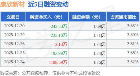 证券之星消息,12月30日,康欣新材(600076)融资买入1239.03万元,融资偿还1481.33万元,融资净卖出242.3万元,融资余额1.69亿元。