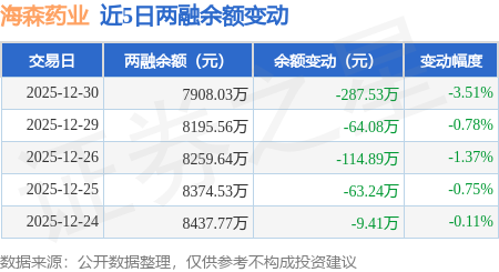 证券之星消息,12月30日,海森药业(001367)融资买入172.2万元,融资偿还459.28万元,融资净卖出287.07万元,融资余额7902.76万元。