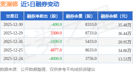 证券之星消息,12月30日,麦澜德(688273)融资买入3133.57万元,融资偿还3630.82万元,融资净卖出497.25万元,融资余额1.13亿元,近20个交易日中有11个交易日出现融资净买入。