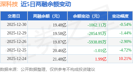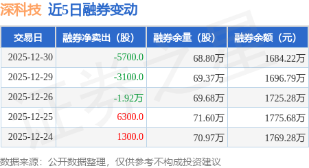 证券之星消息,12月30日,深科技(000021)融资买入1.42亿元,融资偿还1.52亿元,融资净卖出1049.54万元,融资余额19.31亿元。