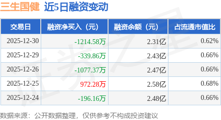 证券之星消息,12月30日,三生国健(688336)融资买入1152.69万元,融资偿还2367.26万元,融资净卖出1214.58万元,融资余额2.31亿元。
