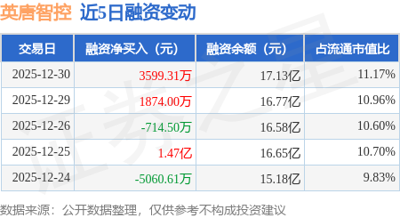 证券之星消息,12月30日,英唐智控(300131)融资买入1.74亿元,融资偿还1.38亿元,融资净买入3599.31万元,融资余额17.13亿元,近20个交易日中有14个交易日出现融资净买入。