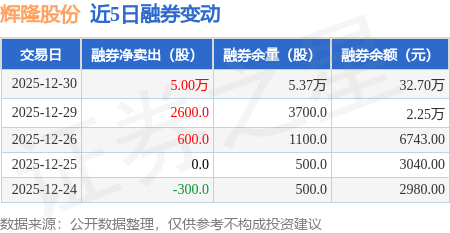 证券之星消息,12月30日,辉隆股份(002556)融资买入1282.41万元,融资偿还1011.72万元,融资净买入270.69万元,融资余额2.33亿元,近20个交易日中有12个交易日出现融资净买入。