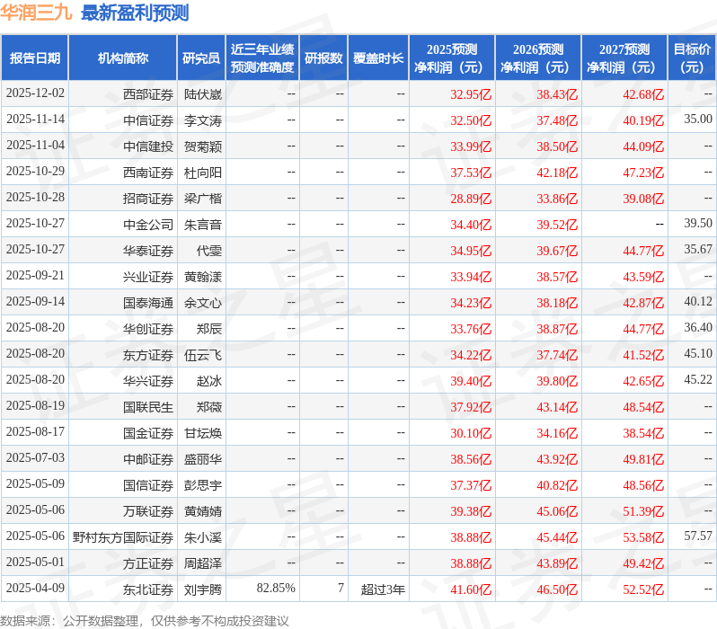 中邮证券有限责任公司盛丽华,龙永茂近期对华润三九进行研究并发布了研究报告《品牌力持续彰显,战略融合不断深化》,给予华润三九买入评级。