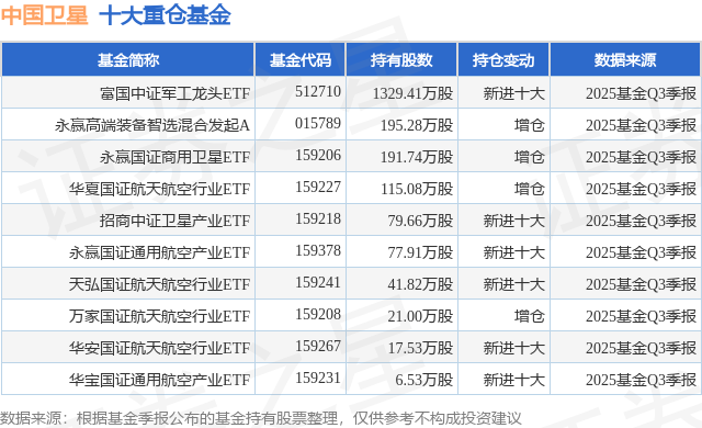 根据2025基金Q3季报公募基金重仓股数据,重仓该股的公募基金共15家,其中持有数量最多的公募基金为富国基金的富国中证军工龙头ETF。富国中证军工龙头ETF目前规模为146.9亿元,最新净值0.7594(12月30日),较上一交易日下跌0.69%,近一年上涨20.92%。该公募基金现任基金经理为王乐乐 牛志冬。王乐乐在任的基金产品包括:富国中证消费50ETF,管理时间为2019年10月14日至今,期间收益率为18.89%;富国中证科技50策略ETF,管理时间为2019年11月15日至今,期间收益率为80.99%;富国中证科技50策略ETF联接A,管理时间为2020年2月20日至今,期间收益率为37.0%。牛志冬在任的基金产品包括:富国中证移动互联网指数(LOF)A,管理时间为2015年5月13日至今,期间收益率为-4.99%;富国中证医药主题指数增强A,管理时间为2016年11月11日至今,期间收益率为42.06%;富国中证娱乐主题指数增强(LOF)A,管理时间为2017年3月13日至今,期间收益率为-22.56%;