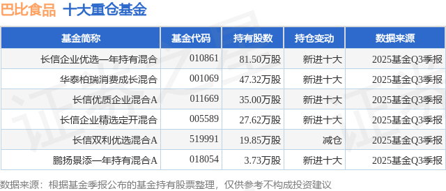 重仓巴比食品的公募基金请见下表: