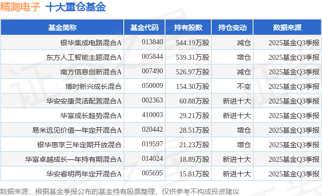 重仓精测电子的前十大公募基金请见下表: