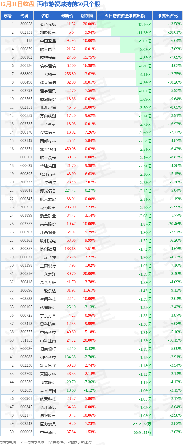 两市游资减持最多的前十只个股为: