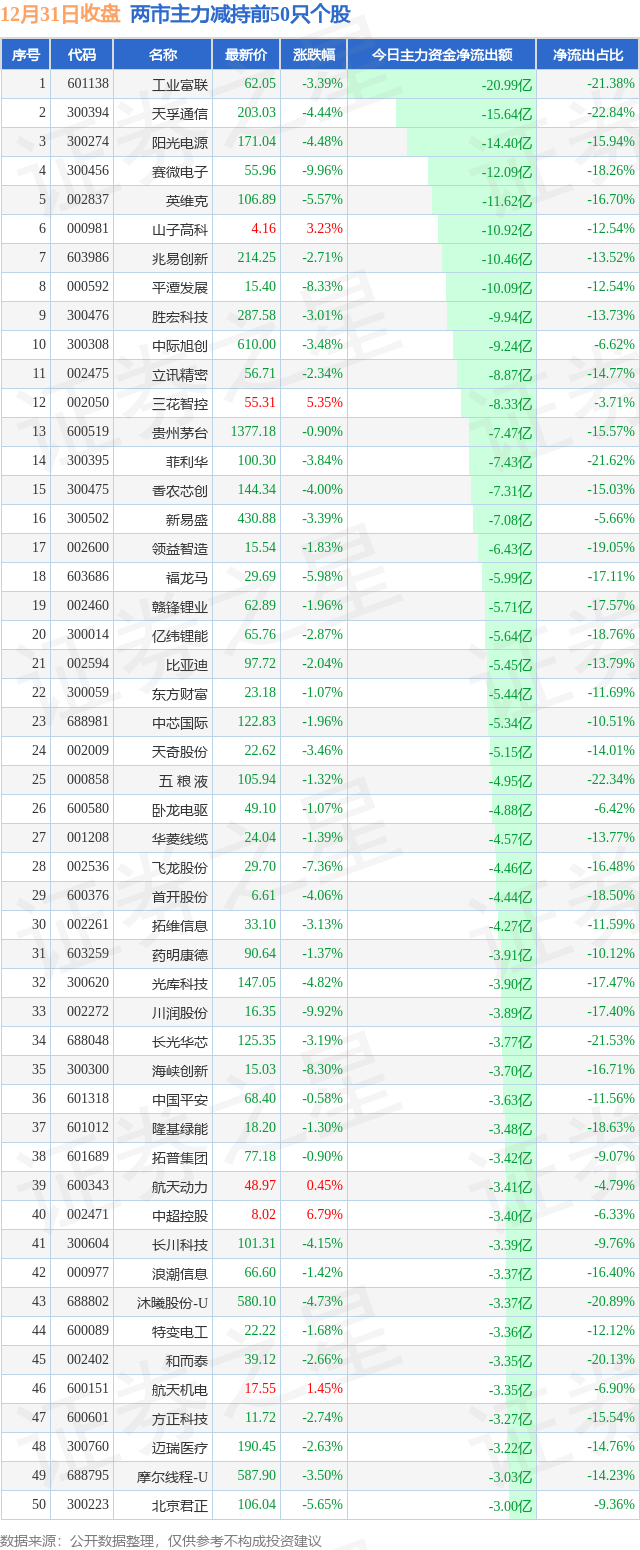 两市主力减持最多的前十只个股为: