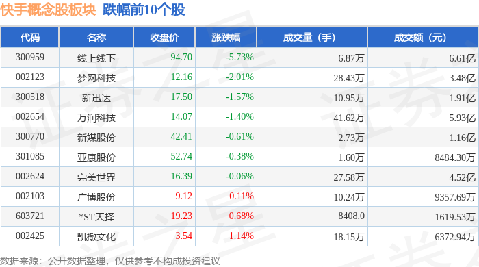 从资金流向上来看,当日快手概念股板块主力资金净流入63.55亿元,游资资金净流出29.24亿元,散户资金净流出34.31亿元。快手概念股板块个股资金流向见下表: