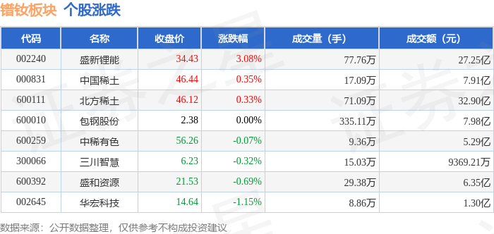 证券之星消息,12月31日镨钕板块较上一交易日上涨0.32%,盛新锂能领涨。当日上证指数报收于3968.84,上涨0.09%。深证成指报收于13525.02,下跌0.58%。镨钕板块个股涨跌见下表: