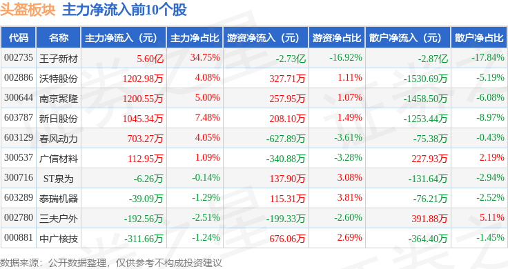 从资金流向上来看,当日头盔板块主力资金净流出4.56亿元,游资资金净流出5596.0万元,散户资金净流入5.12亿元。头盔板块个股资金流向见下表:
