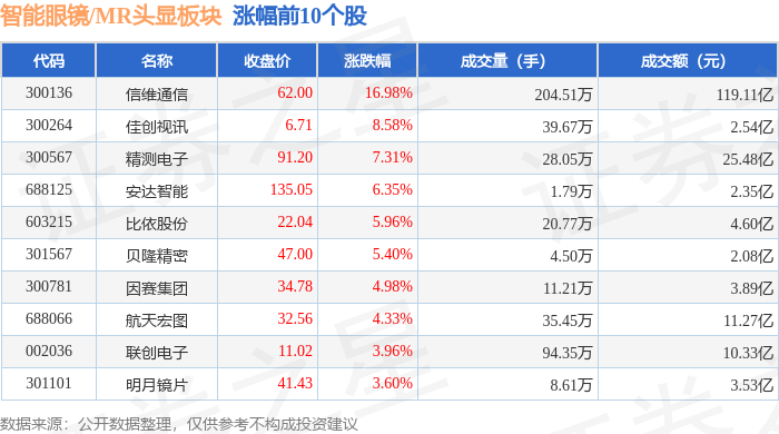 从资金流向上来看,当日智能眼镜/MR头显板块主力资金净流出44.75亿元,游资资金净流入12.39亿元,散户资金净流入32.36亿元。智能眼镜/MR头显板块个股资金流向见下表: