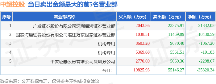 证券之星消息,沪深交易所2025年12月31日公布的交易公开信息显示,中超控股(002471)因日振幅值达到15%的前5只证券,日换手率达到20%的前5只证券登上龙虎榜。此次是近5个交易日内第3次上榜。