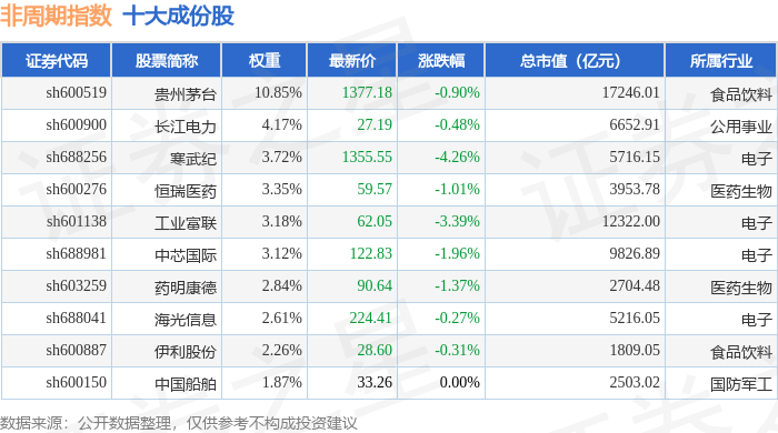 非周期(000064)指数十大成份股详情如下: